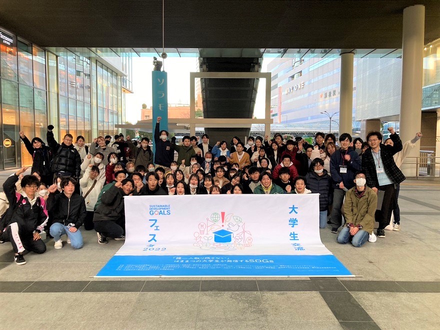 12月4日(日曜日)に浜松市ギャラリーモール・ソラモで、浜松市内の4大学(常葉大学、浜松学院大学、静岡文化芸術大学、浜松医科大学)で構成する浜松市内大学地域貢献ネットワークが主催し、昨年に引き続き「誰一人取り残さない」はままつの大学生が発信するSDGsというサブタイトルのもと「大学生交流フェスタ2022」を開催しました。