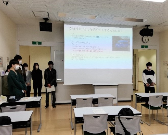 後期は、学生が関心のある課題を提案し、グループワークによる調査・検討を通して、課題解決のための政策を立案し、静岡市の方に向け発表を行いました。