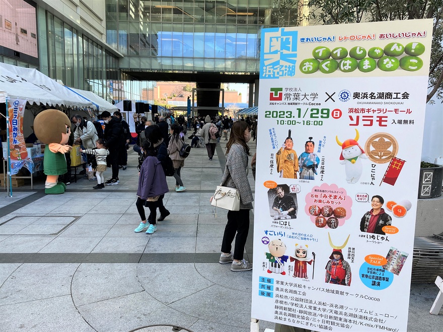 1月29日(日曜日)、経営学部の有志で構成する『地域貢献サークルCocoa』は、浜松市ギャラリーモール・ソラモで『いいじゃん!おくはまなこ』を開催しました。