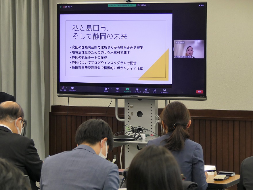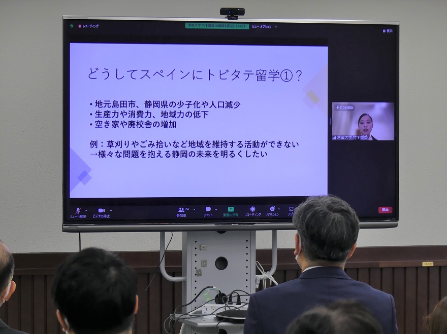 トビタテ!留学JAPAN 日本代表プログラム地域人材コース「ふじのくにグローバル人材育成事業」活動報告会にて、外国語学部の竹下媛香さんが成果報告を行いました。