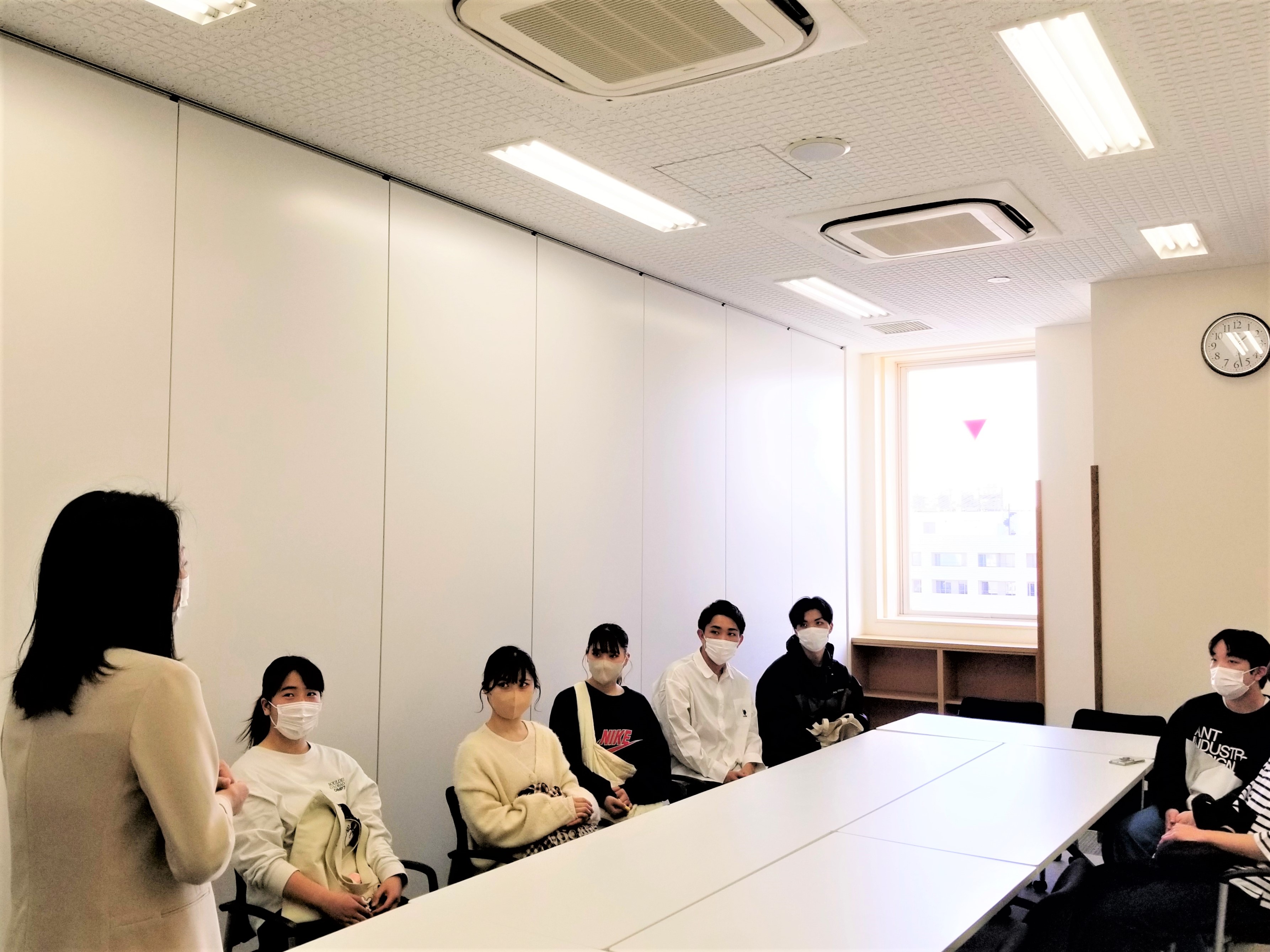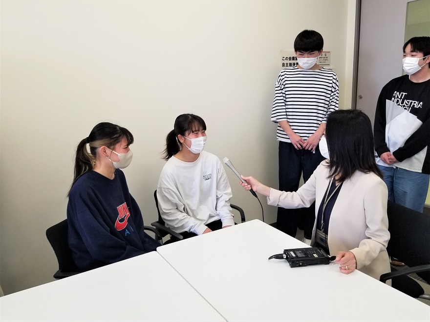 インタビュアーの是永真由子さんに静岡水落キャンパスへお越しいただき、新静岡市誕生年に生まれた20歳の学生より、これからを担う世代としての意見を発信しました。インタビューでは、「どんな静岡市になって欲しいか?」をテーマとして、静岡市に求める将来や希望について各自の考えを伝えました。