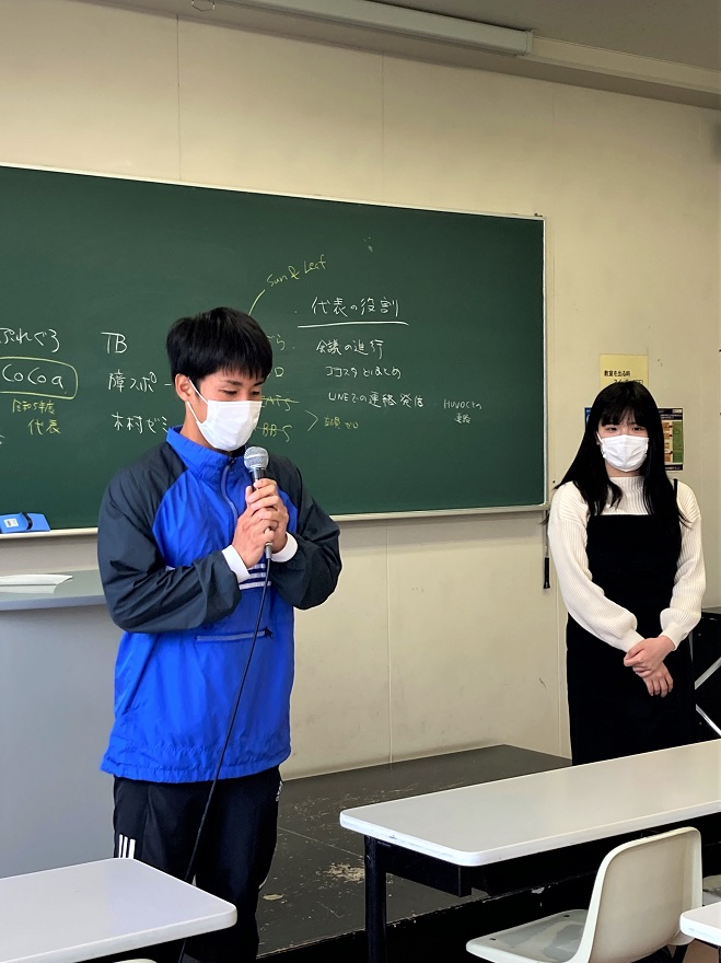 昨年度代表の袴田岬さん(健康鍼灸学科4年・陸上競技部)は自ら企画した学内清掃活動を振り返り、「多くの方が参加してくれて学科を越えた交流ができたことがよかった」と話しました。