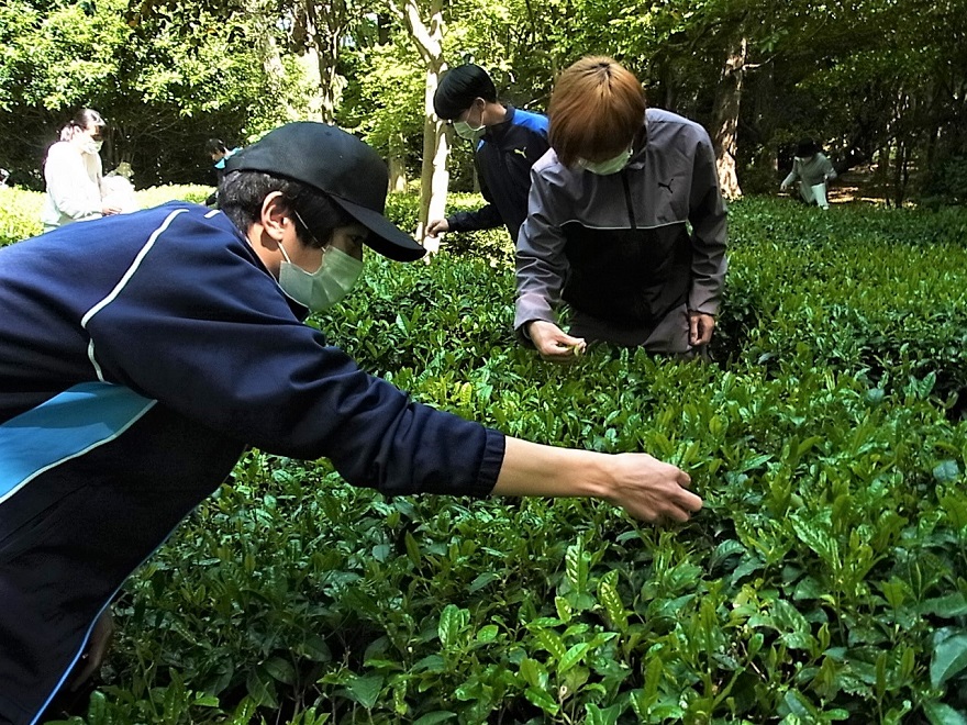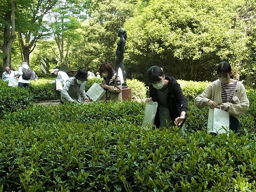 教育学部生涯学習学科と造形学部の博物館実習クラス25名が4月29日(土曜日)、静岡県立美術館ボランティア「草薙ツアーグループ」が主催するお茶摘み作業をお手伝いしました。