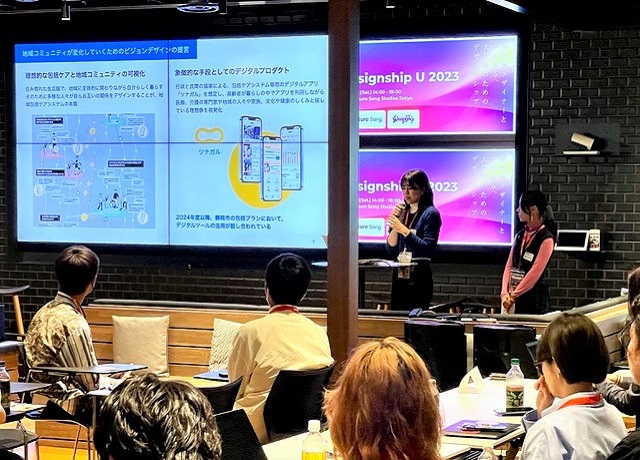 本稿は令和4年度しずおか中部連携中枢都市課題解決事業の活動からさらに研究を進めた内容であり、包括ケアが実現できる地域コミュニティと、それを支えるデジタルサービスのあり方の提言となっています。特に行政の今後の事業計画に影響を与えた成果と、ケアマネージャーなどの当事者が変化した点を述べ、会場の多くのデザイン企業とデジタル庁関係者、ならびに複数大学の学部生、院生から高い評価を得ることになりました。