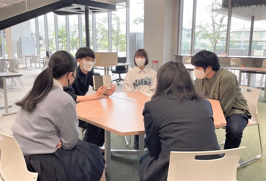 このイベントは、日本語日本文学科の在校生有志がお気に入りの一冊を持ち寄り、高校生に紹介するもので、当日は在校生10人が、集まった高校生に対し、実物を見せながら、お勧めの本を紹介しました。在校生らは、高校生らに興味をもってもらえるよう、表現を工夫しながら物語の魅力を伝えており、会場は時折、笑い声や拍手も聞こえる等、終始和やかな雰囲気に包まれていました。イベントのサブタイトル「好きな本でつながろう」通り、在校生と高校生は本を介して会話を弾ませた他、短大生活や日本語日本文学科の授業などについても、楽しそうに語らっていました。