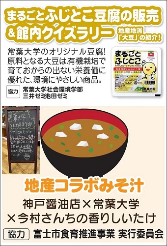 今回、私たちが取り組んでいる、耕作放棄地・休耕地の有効活用と安全な食品の地産地消を目指す活動『まるごとふじとこ大豆プロジェクト』として、「まるごとふじとこ豆腐」と「地産コラボ味噌汁」の販売を行いました。