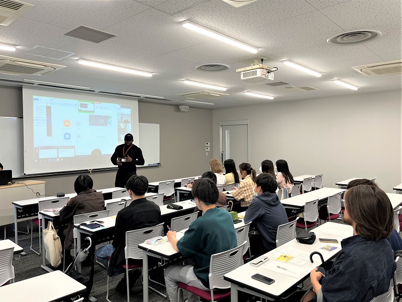 ヤメオゴ氏の作品2本(フランス語・英語字幕)を見たあと、様々な気づきや質問が参加学生から出されると、それに丁寧に応えながら、世界に目を向け理解しようと努める大切さをお話しくださいました。学生たちは普段あまり聞くことない用語や世界で起こっている出来事を知り理解し、解決策を見い出そうとする貴重な機会を得ることができました。