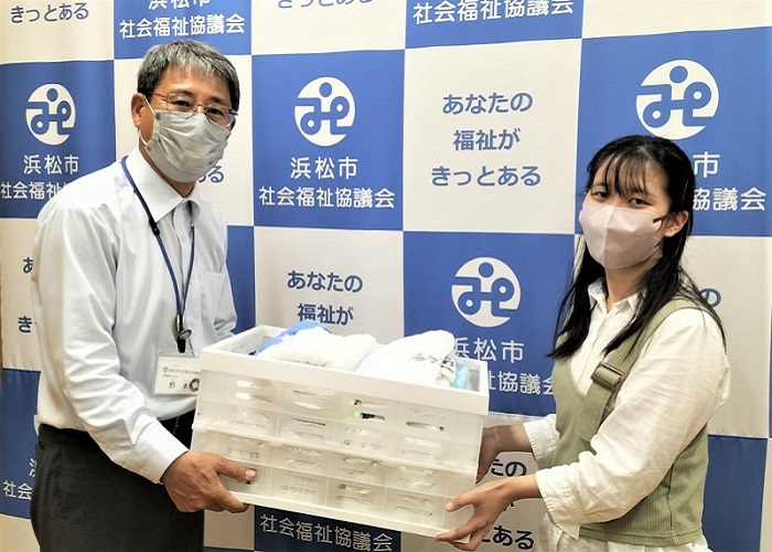 また、浜松キャンパス内では6月6日(火曜日)から6月9日(金曜日)にかけて浸水被害を受けたご家庭の復旧作業を支援するため、タオルの回収を行いました。短い募集期間でしたが、多くのタオルが集まり、浜松市社会福祉協議会北地区センターへ寄付しました。