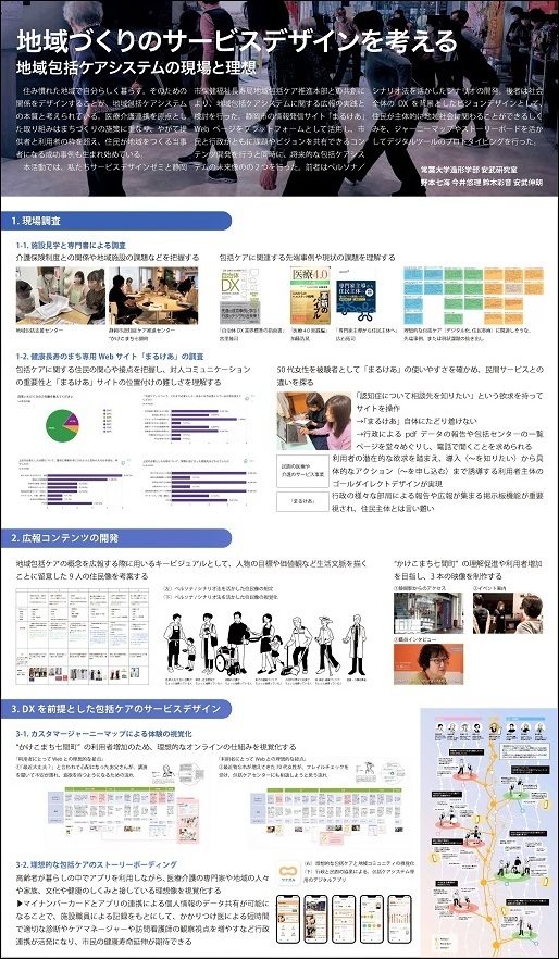 本稿は令和4年度しずおか中部連携中枢都市圏地域課題解決事業「『健康長寿のまち』普及啓発向上に向けた分かりやすい広報戦略」の研究を発展させた内容であり、公共事業にサービスデザインの観点を取り込む設計案の論文が審査され、発表となりました。