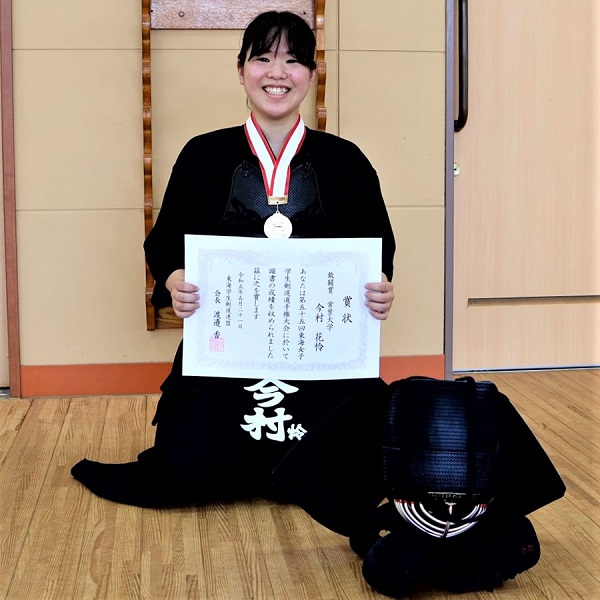 5月21日(日曜日)に愛知県豊田市で行われた『第55回東海女子学生剣道選手権大会』において、本学剣道部の今村花怜さん(心身マネジメント学科1年)が上位10名に与えられる敢闘賞を受賞しました。