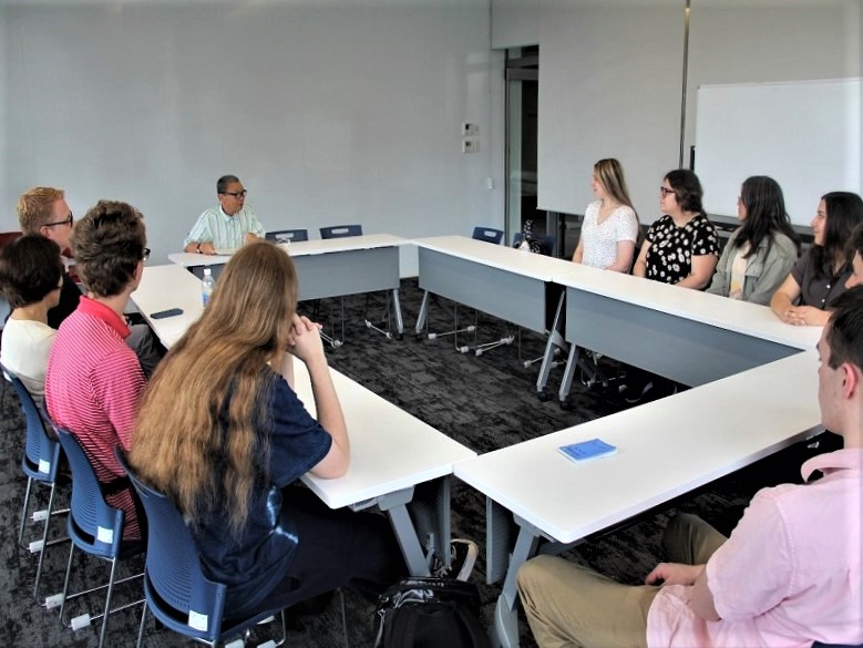 6月27日(火曜日)には江藤学長を表敬訪問し、9名の学生がそれぞれ日本語を交えて自己紹介をしたのち、本学で1週間を過ごした感想を語りました。江藤学長は1988年から続く本学とクレイトン大学との長い交流の歴史について触れながら英語で歓迎の言葉を述べました。