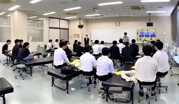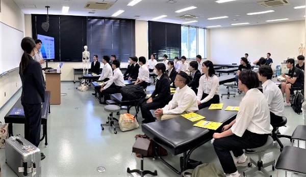 7月12日(水曜日)、健康プロデュース学部健康柔道整復学科と健康鍼灸学科3・4年生を対象に、株式会社ほねごり・ヒューマンリソース部次長の丸山洋生様と、ほねごり接骨院勤務の本学健康柔道整復学科卒業生の長島吏沙先生をお招きし、第1回キャリア交流会を開催しました。本会は将来像の明確化を目的に毎年実施しており、今回24名の学生が参加しました。