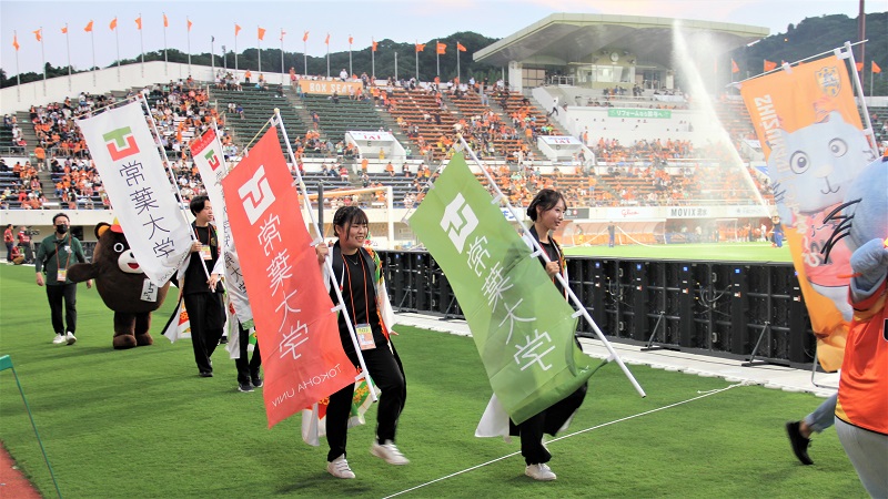 7月29日(土曜日)にIAIスタジアム日本平において、明治安田生命J2リーグ清水エスパルスVSファジアーノ岡山の試合が行われ、本学の学生たちがパートナー活動の一環としてハーフタイムにピッチを一周しました。