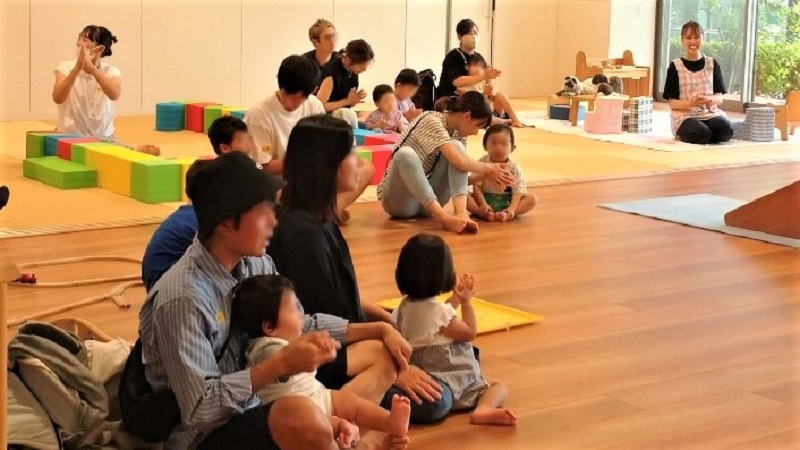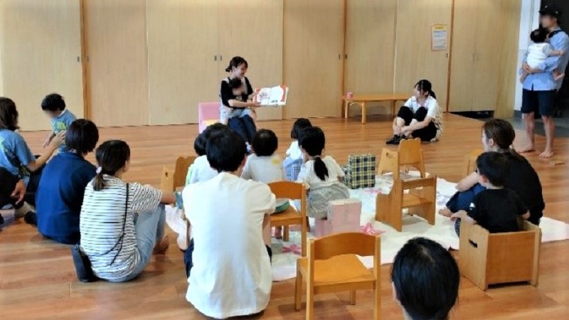 シャボン玉あそびの後は、水で遊びながらシャボンを落とし、クールダウン。お部屋に入ってからは、絵本の読み聞かせを聞きながら、参加した皆さんが温かな雰囲気のなか終了となりました。また親子で触れ合える楽しい子育て支援活動を企画しますので、是非ご家族皆さんでご参加ください!(担当:常葉大学短期大学部 加藤寿子)