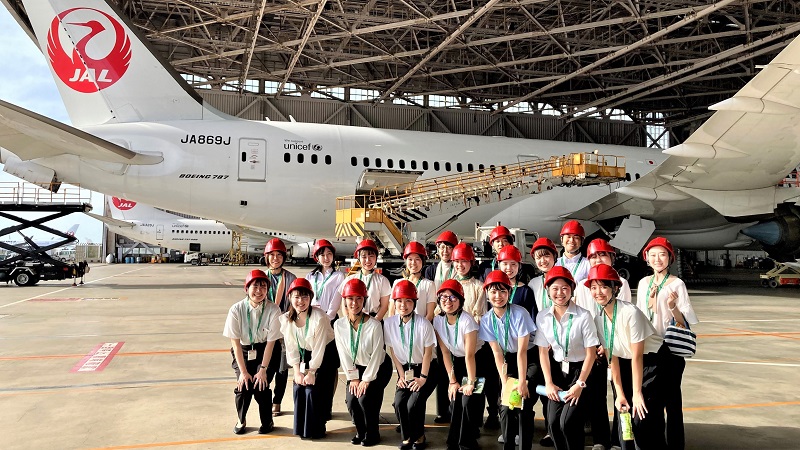 外国語学部の共通科目『航空ビジネス』では、実習としてJAL産学連携部による現地での研修を行っています。