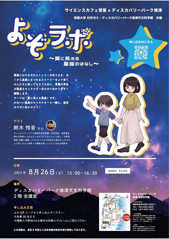 8月26日(土曜日)、造形学部村井ゼミがディスカバリーパーク焼津天文科学館と共催し、今年度2回目の『サイエンスカフェ常葉』を開催しました。