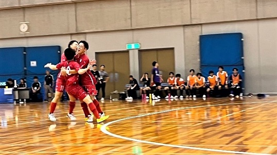 1回戦は、北九州市立大学シュティアドール(九州地域代表/福岡県)と対戦し、先制点を許す展開となりましたが、前半終了間際に木山貴斗選手(心身マネジメント学科4年)の2ゴールで逆転し、2-1で前半を折り返しました。後半は同点に追いつかれるものの、チャンスで確実にゴールを決め6-4で初戦を突破しました。