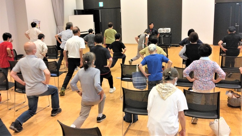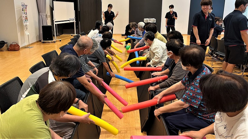 この講座は、授業(介護予防運動演習)で得た知識と指導スキルを活用し、サーラ音楽ホールと常葉大学が講座の企画・運営を行う連携事業の一環として行われました。当日は、地域の住民38名が参加しました。