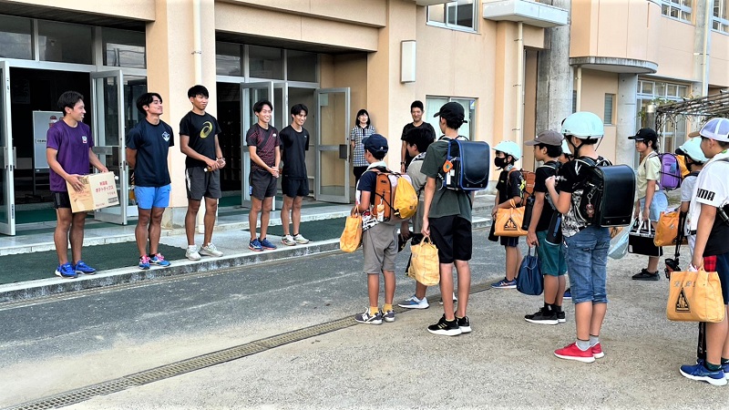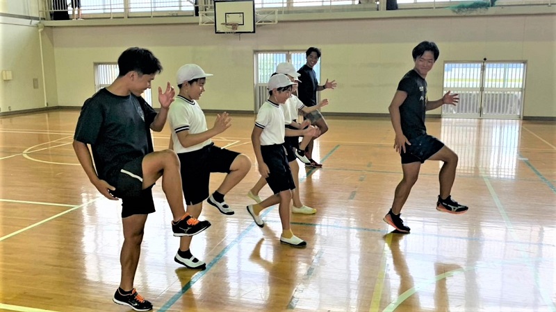 主将の田中稜真さん(心身マネジメント学科4年)は「日が経つにつれて専門的な動きも徐々に上達が見られた。技術の向上はもちろん、一人ひとりが楽しく練習できていたと思う」と語りました。また、最終日には「僕たちでも大会は緊張する。当日は、結果に関係なく陸上を楽しんでほしい」と児童にエールを送りました。