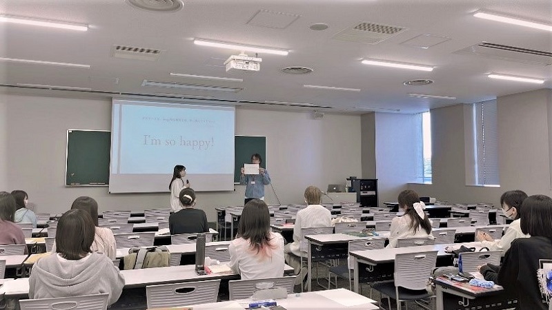 当日は、「プレゼンテーション演習Ⅰ」(担当:宮本淳子准教授)の受講生をはじめ、コピーライティングに興味のある日本語日本文学科の学生らが参加し、コピーライティングの基本的な考え方や作る際に重視するポイントなどについて、実際に片桐氏が手掛けた作品を例に解説して頂きました。