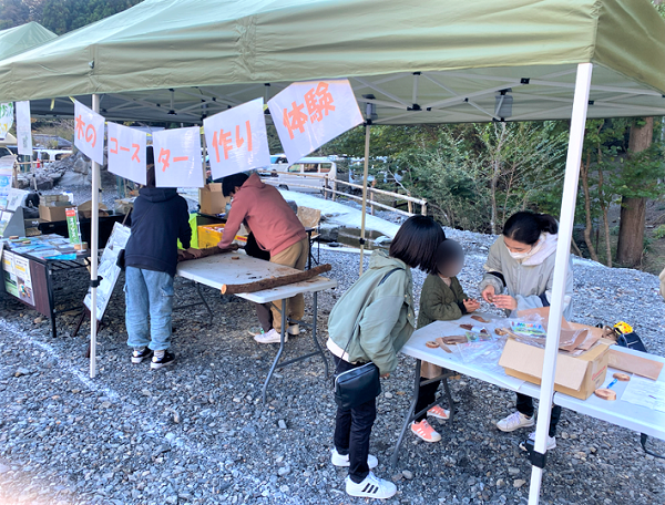 本事業では、静岡市葵区地域総務課と協力し、人口減少が地域の課題となっているオクシズの認知度向上と移住者の増加を目標に掲げています。この地域課題を解決するため、専門演習Ⅱの授業で計画されたPBL(課題解決型学習)のための実践的経験の場として,同地区でのボランティア活動や移住体験モデルプランの検討に取り組んでいます。参加した学生からは、「梅ケ島という初めて訪れた地域で、地域の方々とたくさん交流することができ、とても良い経験になりました」や「今回参加した梅ケ島温泉郷祭りの杉・ひのきのコースター体験のボランティアでは色々な人達に楽しんでもらえて良かったと感じました」、「ブースから見える周囲の山々も迫力があり、梅ケ島の良さを体感することが出来ました」など、梅ケ島の現地を知り、実践による学びに繋がる感想が寄せられました。
