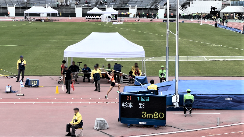 鹿児島県鹿児島市で開催された国民体育大会『燃ゆる感動かごしま国体2023』(10月7日~10月17日)において、本学陸上競技部の杉本彩さん(こども健康学科3年)が陸上競技 成年女子棒高跳び〈決勝10月14日(土曜日)・白波スタジアム(鹿児島県立鴨池陸上競技場)〉に出場し、3メートル80の跳躍で5位入賞という結果を収めました。
