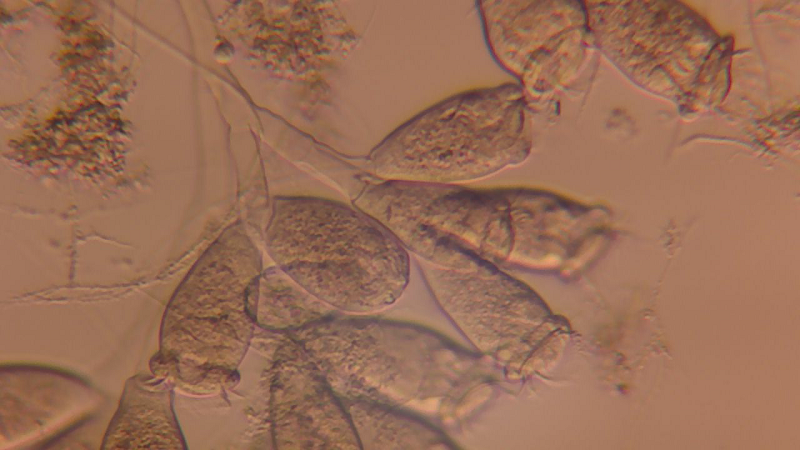 生物顕微鏡で観察された群体性のツリガネムシ