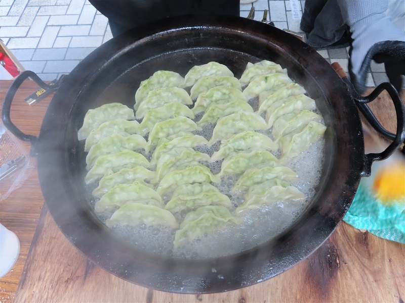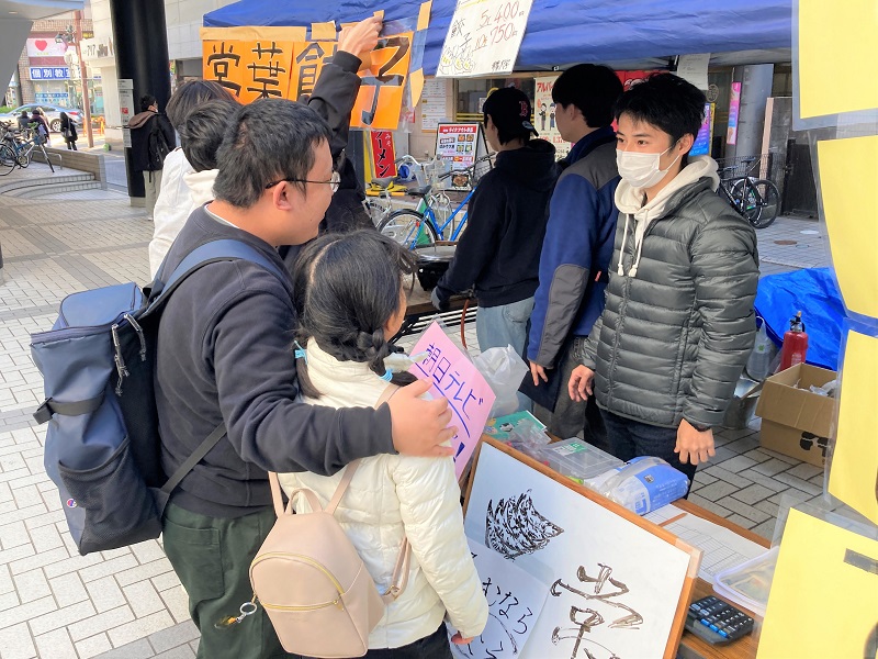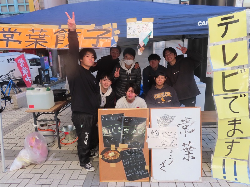 ゼミ長の小田颯人さん(経営学科3年)は「自分たちが立てた収支計画には少し不安がありました。当日はゼミ生全員でお客様に商品のPRをしっかりと行い、順調に販売数を増やし、売り上げを伸ばすことができました」と話しました。来店した親子はさっそくその場で餃子を頬張り笑顔で「おいしい」と話してくれました。