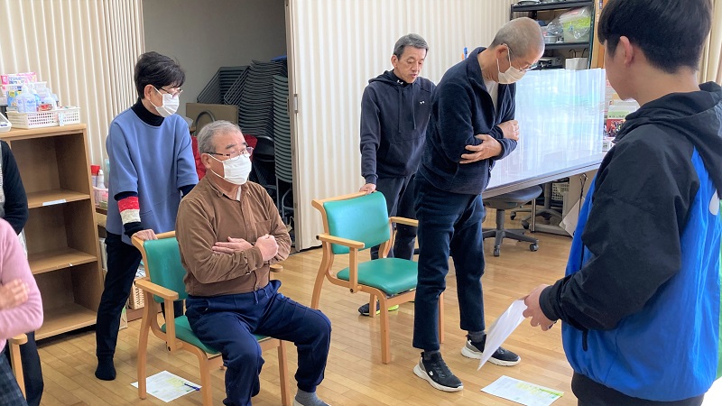 浜松市社会福祉協議会北地区センター主催の『いきいき健康教室』が12月18日(月曜日)、浜松市細江介護予防センターで行われ、健康プロデュース学部心身マネジメント学科 井口睦仁講師と、3年生のゼミ生3名が講師として参加しました。