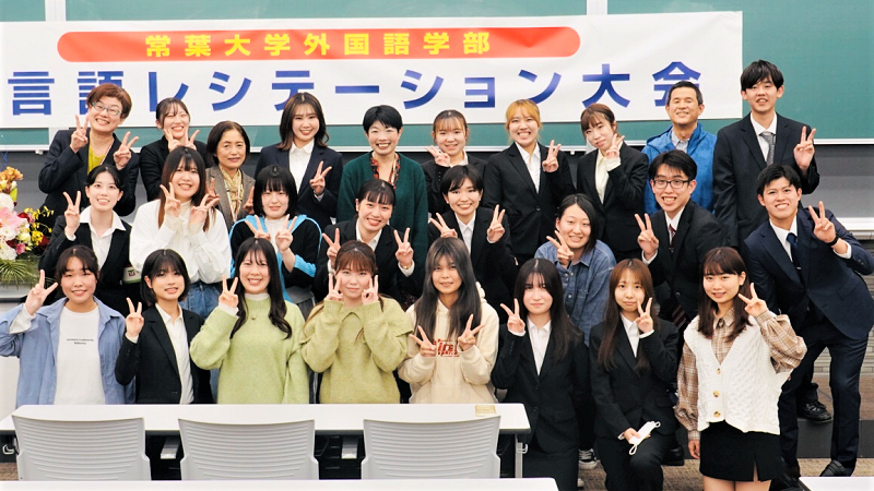 第10回多言語レシテーション大会が、外国語学部グローバルコミュニケーション学科主催で、12月16日(土曜日)に静岡草薙キャンパスで開催されました。本大会は常葉大学外国語学部創設30周年を記念して2014年から毎年行われており、グローバルコミュニケーション学科の3年生と2年生による学生実行委員が企画・運営を担当しています(今年度委員長:秋山ひより(3年))。