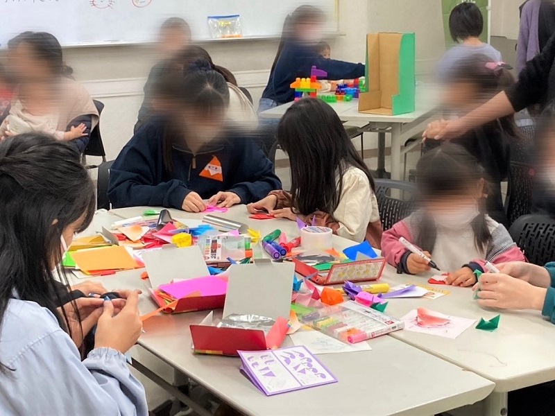 参加にあたり、保育学部増田啓子ゼミの2年生は、子どもや保護者のために何ができるかを考え、当日に向けて看板やオリジナルカルタを作成したり、折り紙の折り方を学んだり、クリスマスにちなんだ絵本の読み聞かせの練習をしました。