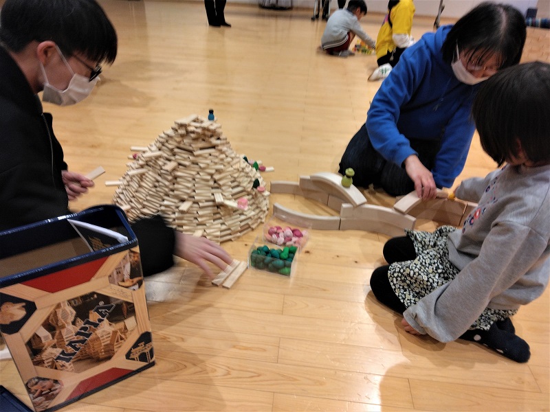 12月19日(火曜日)に健康プロデュース学部こども健康学科の阿部眞弓講師と学生4名が、サーラ音楽ホールにて、親子で楽しむことができる「『カプラ®』ブロックを積んで遊びましょう♪」を行いました。