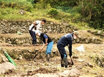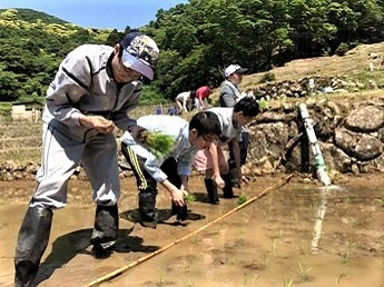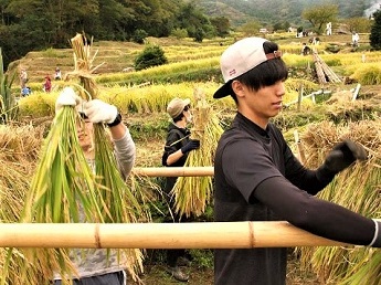 本学では、包括連携協定を締結する静岡県松崎町の石部棚田において、社会環境学部やボランティア学生有志を中心に棚田の保全活動に取り組んでおり、約20年に及び活動を続けています。この長期にわたる活動が評価され、感謝状のみならず、特別感謝状の受賞にも至りました。