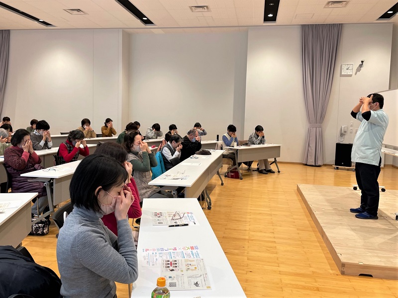 2月2日(金曜日)、浜松市サーラ音楽ホールで健康プロデュース学部健康鍼灸学科の村上高康准教授が『ツボをつかったセルフケアを体験しよう』を開催し、29名の地域の方が参加しました。これは、サーラ音楽ホールとの連携事業として行われました。今回は、東洋医学のツボに注目し、こころや体が疲れたときのストレスを解消する『セルフケア』について紹介しました。