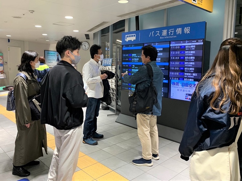 学生は、『暮らし』『食事、お土産』『日本平夢テラス・久能山東照宮の観光』『チラシ作成、交流会』の4つのグループに分かれて準備を進め、ツアールートの企画、当日のアテンドや観光ガイド、さらに最後の交流会では静岡市の魅力紹介や移住者との対談を行いました。