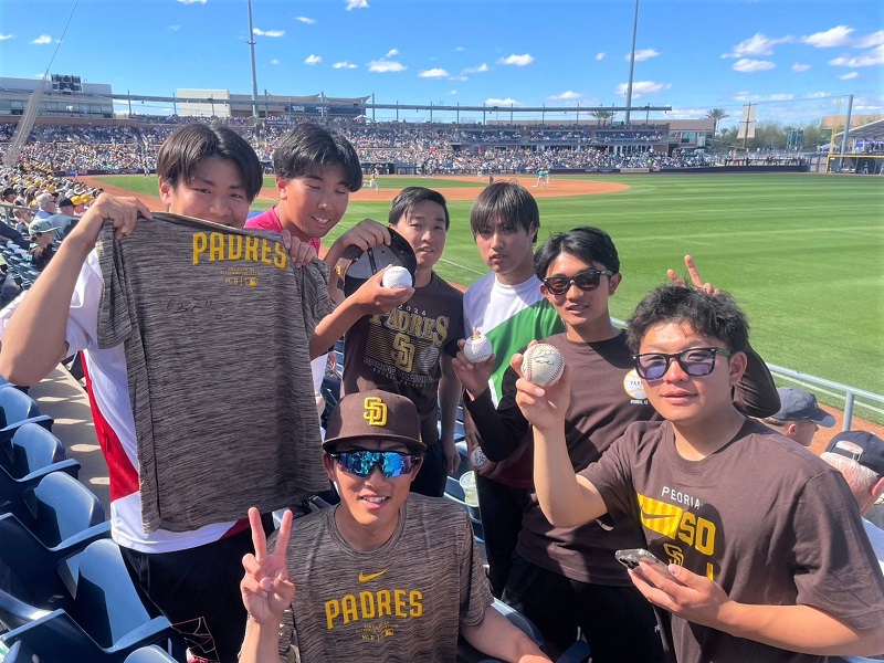 滞在期間中には、Los Angels Dodgers、San Diego Padres、Chicago Cubsなどの日本人選手が活躍するチームの練習や試合を観戦し、学生たちは間近で見るメジャーリーガーのオーラや技術の高さに圧倒されていました。