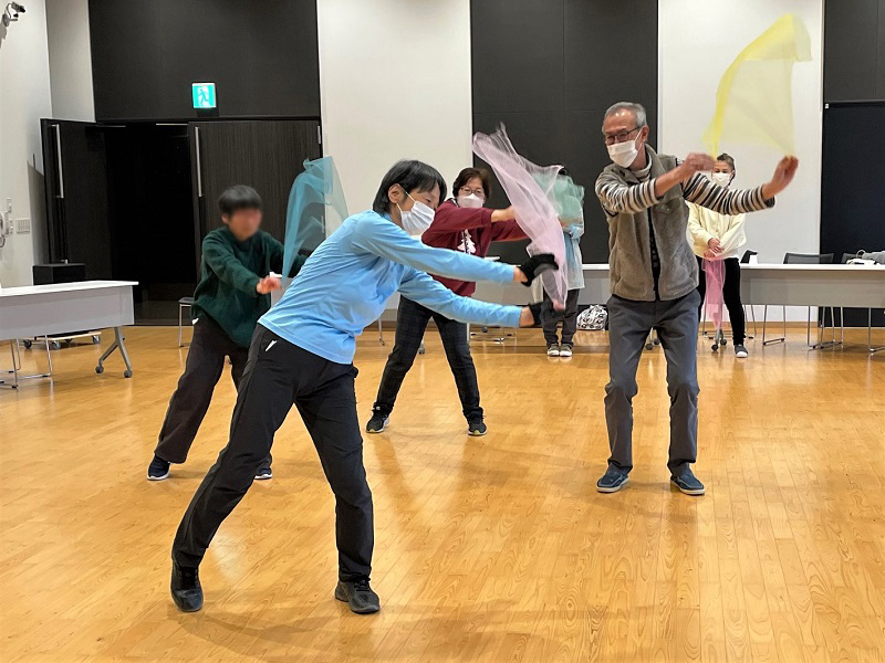 音楽は聴いているだけではなく、いっしょに口ずさみ身体を動かしながら聞くことで、心の中に入り脳に記憶されます。今回ご参加いただいた最高齢79歳の方は、「やっているうちにどんどん元気になりました」と笑顔で語ってくれました。参加者の方には90分間の活動を通し、汗をかき、頭も心もリフレッシュし、喜んでいただきました。