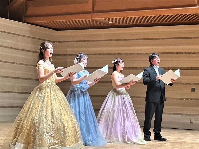 今年度は、声楽専攻1名、ピアノ専攻3名によるソロ演奏に加え、音楽専攻の下級生を加えたアンサンブルや合唱を披露し、大学生活の集大成となった演奏会でした。