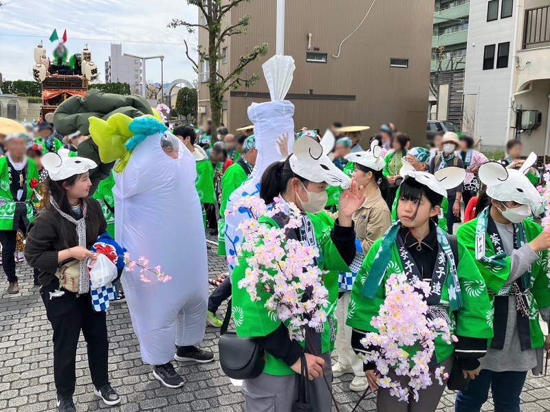 4月6日(土曜日)、廿日会祭にて静岡まつりのボランティアと共に造形学部のアート領域、環境デザイン領域の有志学生が踟に参加しました。制作したネズミのお面を被り、本部踟と当番踟に加わり街の中を歩きました。