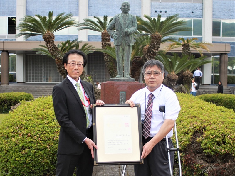 静岡草薙キャンパスの式典では窪田眞二名誉教授に、浜松キャンパスでは加藤良也名誉教授に称号記が贈られました。