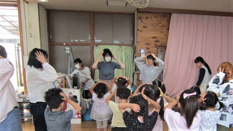 5月30日(木曜日)、6月6日(木曜日)、6月13日(木曜日)に、英米語学科の2・3・4年生の24名が、近隣のこども園で英語活動を行いました。