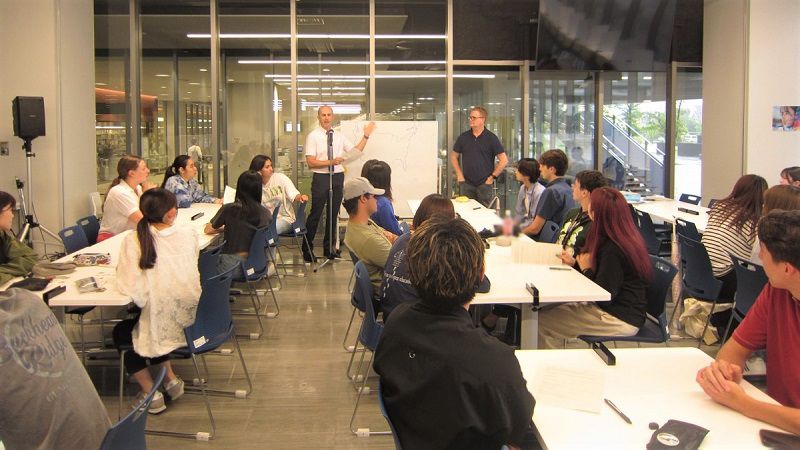 クレイトン大学の学生と引率教員は、これから1カ月間、静岡草薙キャンパスで過ごします。グランテーブルには『Creighton Corner』というクレイトン大学の学生と交流できる場所がありますので、交流をしたい方は、お昼休みにその場所へ行き、自ら交流を深めてください。