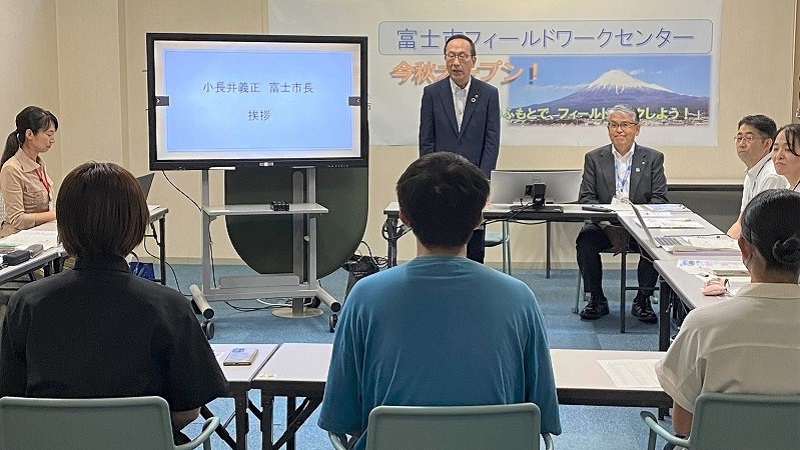 6月29日(土曜日)、富士市ではFWC(フィールドワークセンター)※プレオープン・第1回整備検討会が開催され、小長井義正富士市長ご出席のもと、常葉大学社会環境学部三井ゼミ4年米山拳世さん、経営学部3年松下友哉さん、石川巴菜さんが出席し、ゼミの産官学連携活動、フィールドワークの事例を発表しました。