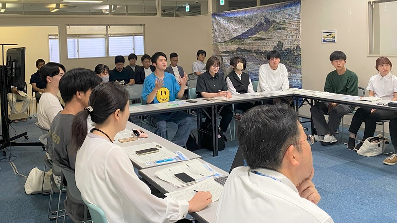 当日は、本学メンバーのほか、整備検討会のメンバである、静岡英和学院大学人間社会学部、静岡大学グローバル共創科学部、教育学部、静岡福祉大学子ども学部、日本大学国際関係学部のほか、県外の専修大学経営学部の学生、および指導教員、富士商工会議所YEGのメンバが参加し、それぞれの活動の紹介を行い、FWCの施設、必要な機能などの意見交換を行いました。