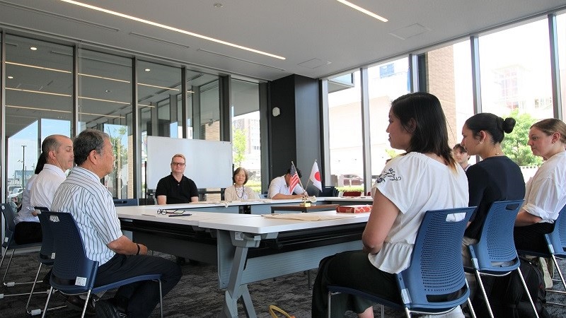 7月3日(水曜日)には、江藤学長を表敬訪問しました。7名の学生がそれぞれ日本語を交えて自己紹介をしたのち、本学で2週間を過ごした感想等について語り合いました。江藤学長は、1988年から続く本学とクレイトン大学との長い交流の歴史について触れながら英語で歓迎の言葉を述べました。