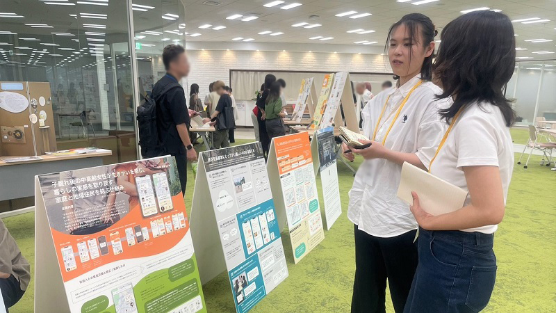 会場内では学生のプレゼンに対して互いの学生や教員、企業の方々との熱意ある対話が繰り返され、参加した本学の1年から4年の15名は、UXデザインやソーシャルイノベーションの学びが他大学にどのように受け止められるのかを知る貴重な機会となりました。また企業のデザイン部署で活躍する多くの卒業生も集い、厳しくも暖かい意見をいただくことができました。