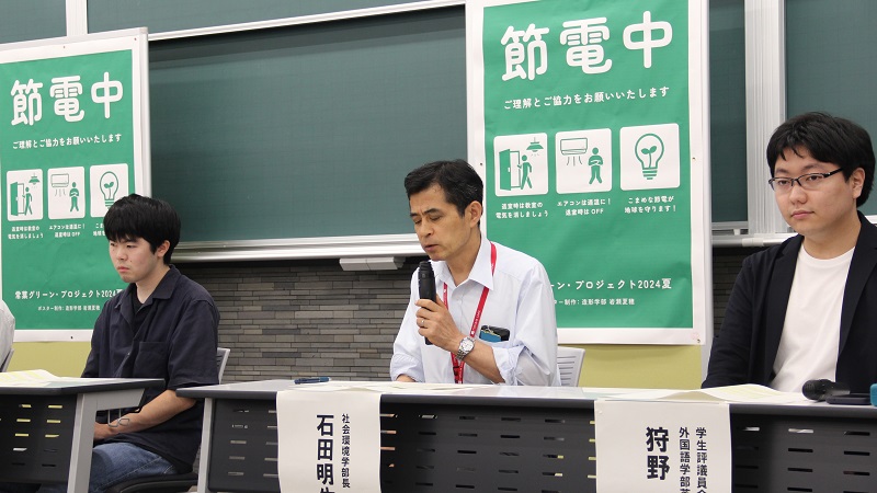 ディスカッションの最後には、社会環境学部長の石田明生教授から地球温暖化のメカニズムについてご説明いただき、さらに節電意識を高められる良い機会となりました。