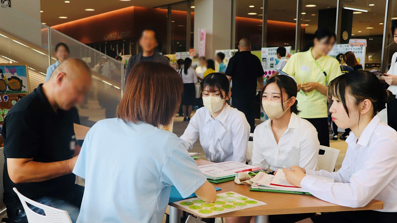 当日は、県内43法人が各々の保育施設の特徴や魅力を発信するために出展し、その情報を求めて198人が参加しました。とりわけ、短期大学部保育科1年生は『ライフデザイン総合セミナー』という短期大学部必修の教養教育科目の一環として全員が参加し、保育を学び始めて約3カ月の今、保育の魅力を再確認することができました。