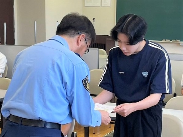 今回、委嘱を受けた作業療法学科の望月綾人さん(3年)は「犯した罪と向き合うことを支援する作業療法士として、またその資格を持ちながら警察官として活躍する道があると知った。大学の授業では、日本は再犯者率が高く、犯罪を未然に防ぐことが大切だと教わったため、防犯活動に積極的に参加したい。こういった貴重な経験を卒業研究や自分の将来にも役立てていきたい」と話しました。