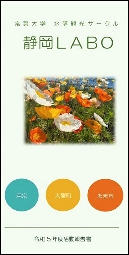 水落観光サークル(代表:山本瑠璃さん(法学部3年)・顧問:法学部 丸岡浩三教授)は、静岡県内の観光地への取材を行い、SNSやパンフレットを作成し情報発信を行っています。これまでパンフレット『静岡LABO』を2回発行し、学生に静岡の魅力を伝える活動を行っています。